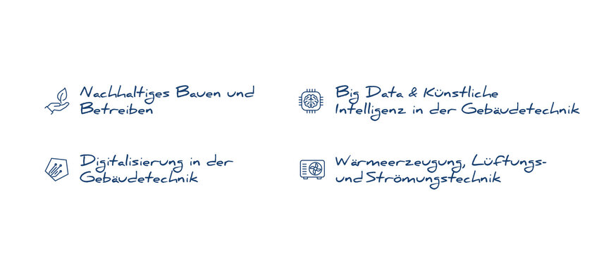 Innovative Konzepte zur thermischen Energiegewinnung sowie zur effizienten Luftführung und Klimatisierung stehen im Fokus. Die Forschung reicht von Wärmepumpentechnologien bis hin zur strömungstechnischen Simulation komplexer Gebäudesysteme.