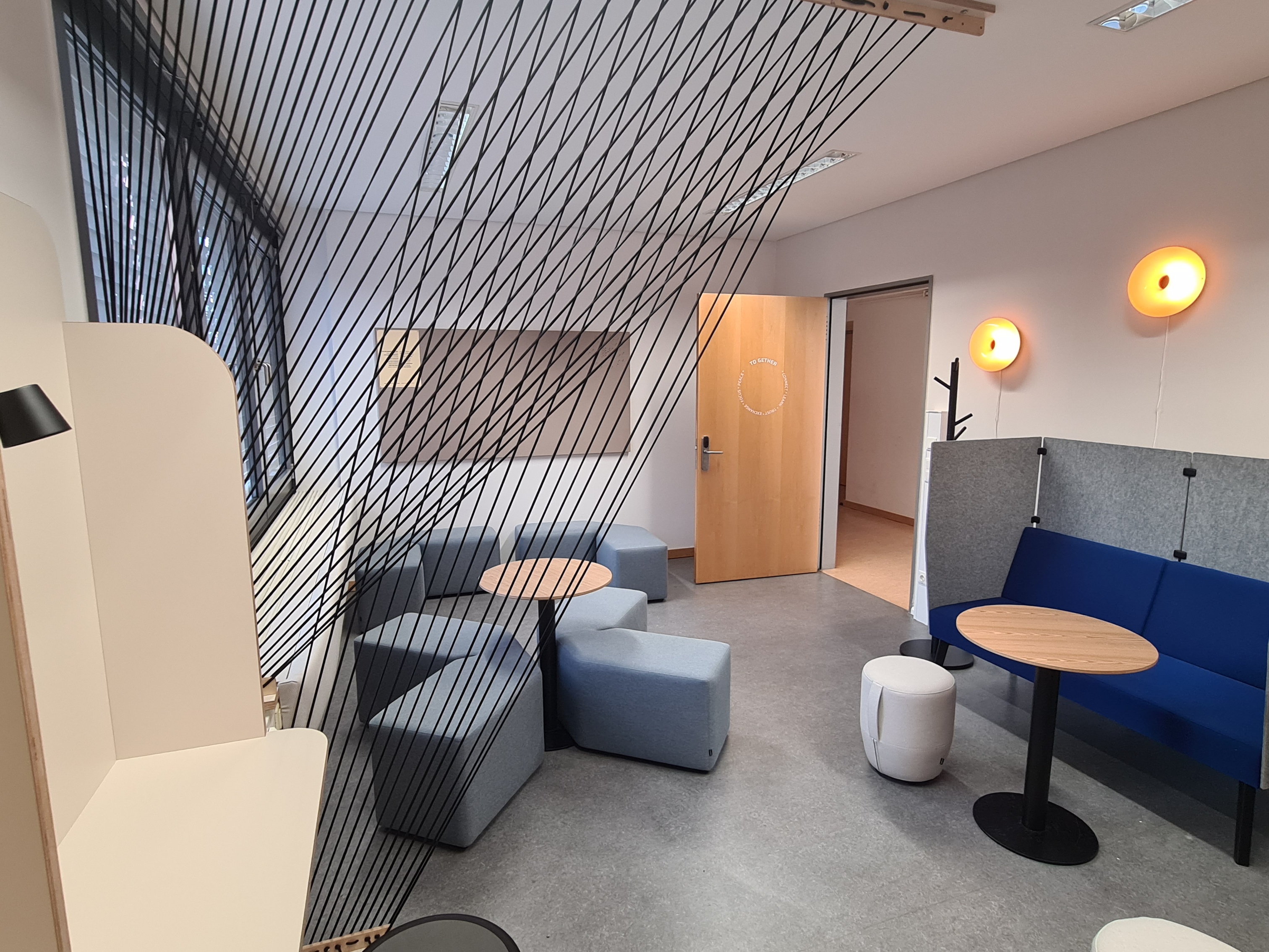 An den fest installierten PC-Arbeitsplätzen sind zusätzlich gut erreichbare Steckdosen in ausreichender Zahl für die Stromversorgung von privaten Notebooks installiert.