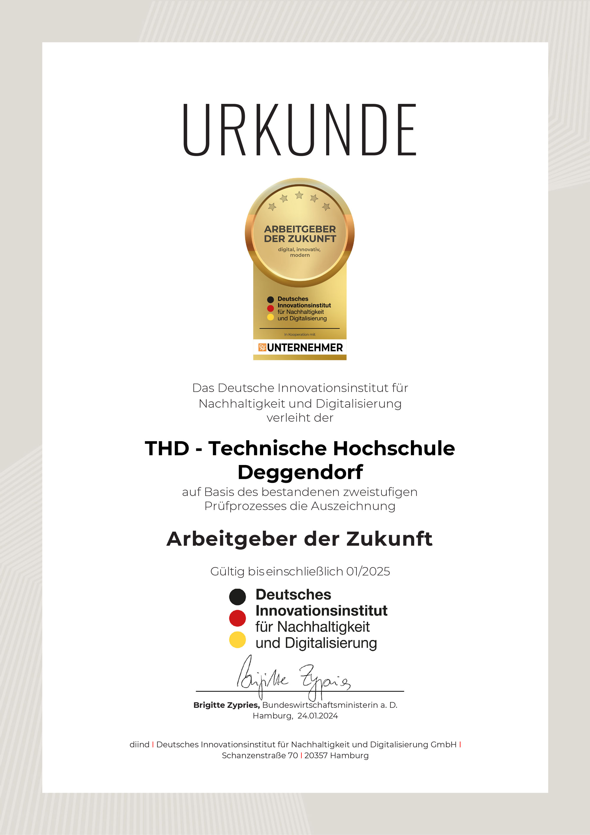 Herzlich willkommen an der Technischen Hochschule Deggendorf! Einer Hochschule mit grenzenlosen Möglichkeiten, an der Studierende und Mitarbeitende studieren, forschen, lehren und mutig Innovationen und Entwicklungen voran treiben. Entdecken Sie die THD - innovativ & lebendig.