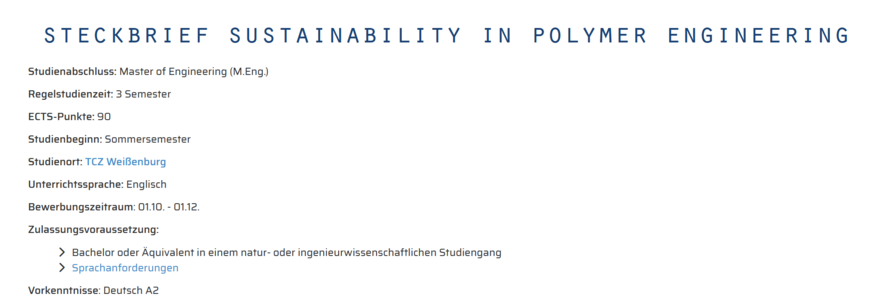 Ab dem Sommersemester 2025 startet am Technologie- und Studienzentrum in Weißenburg der neue Masterstudiengang Sustainability in Polymer Technology.