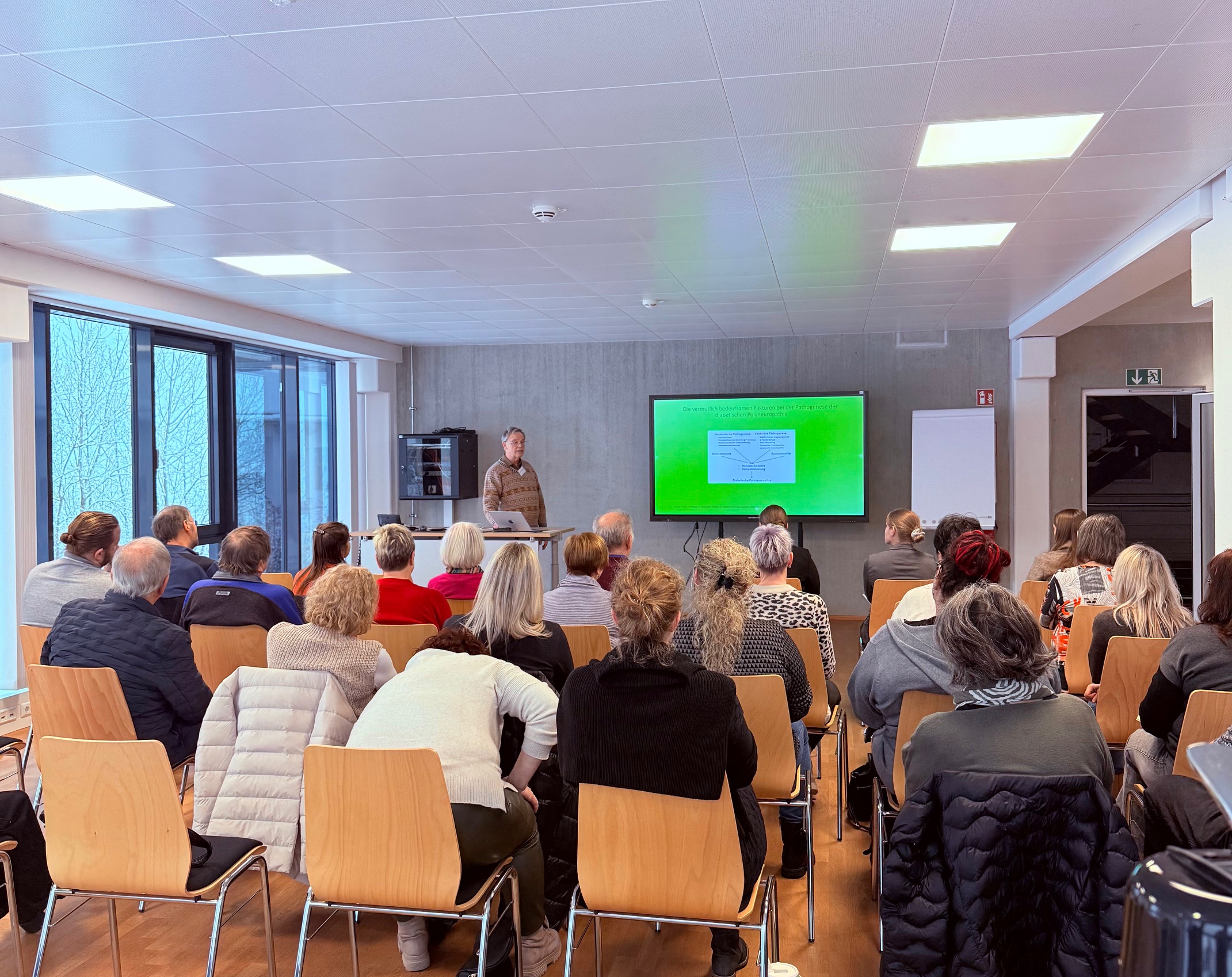 Der Tag fing damit an, dass Dr. Hans Flatter einen verständlichen Einblick in die Entstehung von Diabetes gab. Er erklärte ebenfalls die möglichen Folgeerkrankungen sowie moderne Versorgungsansätze. Im Anschluss stellte Chirurg und Leiter des Bachelorstudiengangs Physician Assistant (THD), Prof. Dr. med. Thiha Aung zusammen mit Anna Friedrich aktuelle rekonstruktive Behandlungsmöglichkeiten vor, die Amputationen vermeiden können. Anhand praxisnaher Fallbeispiele wurden Behandlungsoptionen für Betroffene mit diabetischen Füßen und chronischen Wunden erläutert. Zuletzt informierte Professor Aung über aktuelle Entwicklungen in der Liposuktion, inklusive moderner Operationstechniken und der Berücksichtigung von Leistungen der Krankenkassen.