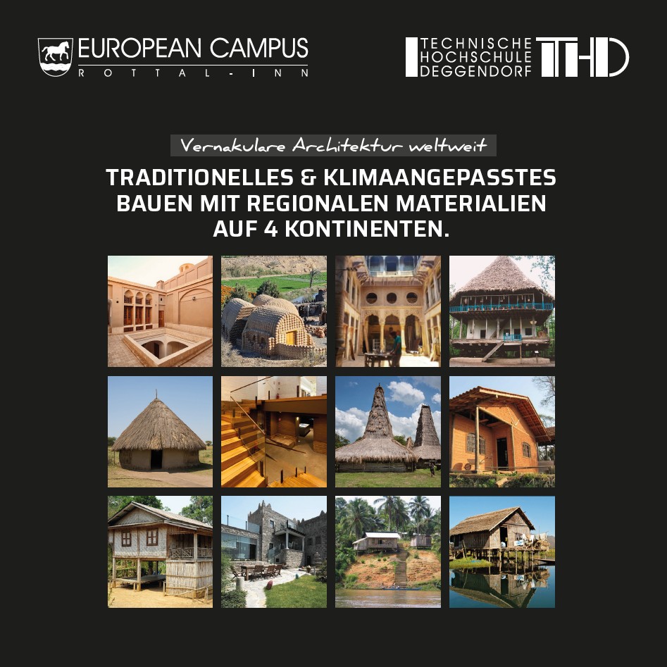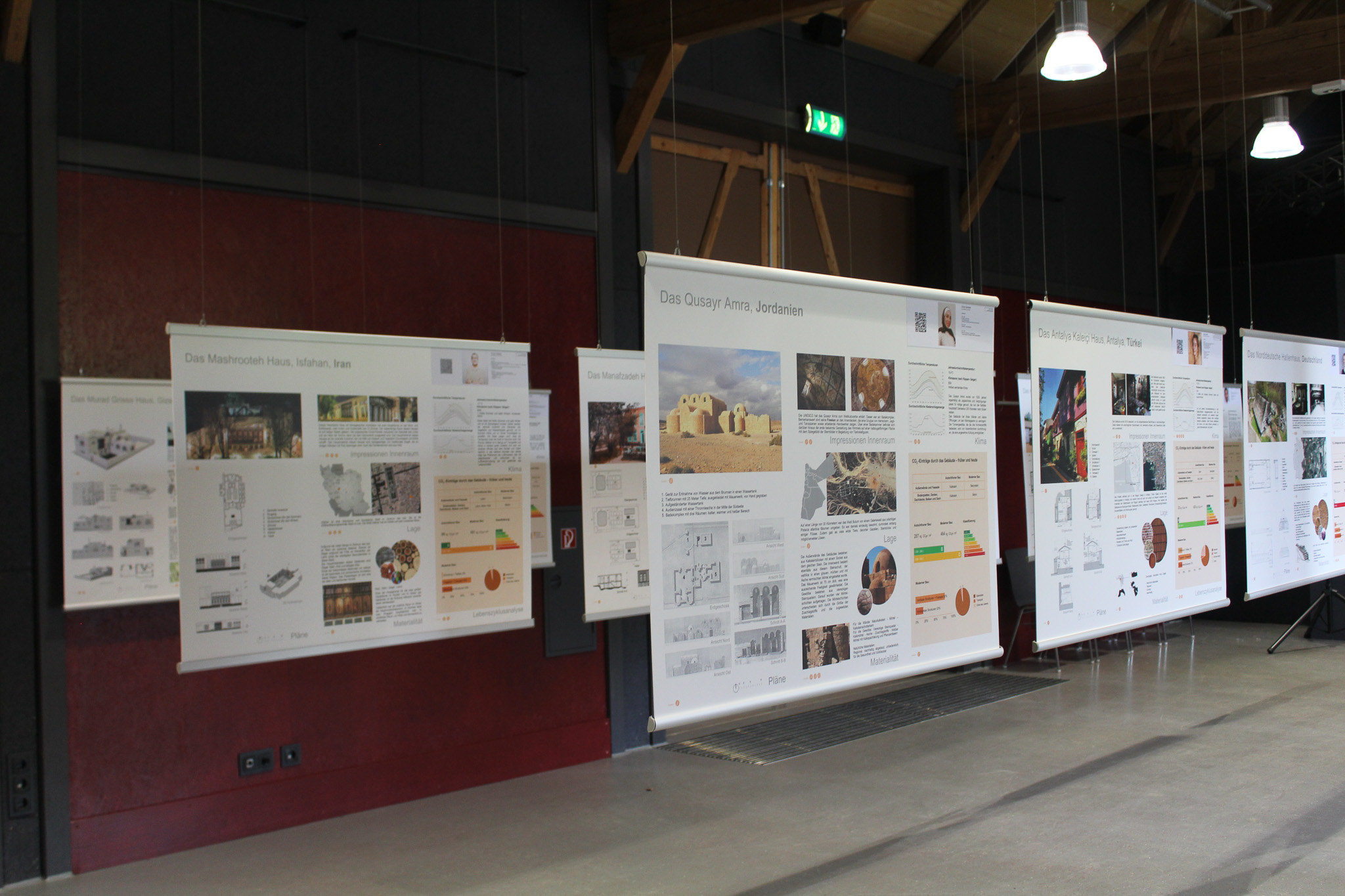 The exhibition shows sustainable, regionally unique architecture from the different home countries of the students, which are spread all over the world. In connection with this, a life cycle assessment was shown, comparing the environmental impact of traditional construction methods with modern construction methods, as well as a comparison with the climate of the study location Pfarrkirchen.