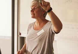 Später durften die Lehrkräfte selbst in die Rolle der Schülerinnen und Schüler schlüpfen. Sie stellten mit Unterstützung einer technischen Trainerin die Ideenfindungsphase nach und tüftelten an Workstations an kleinen Hacks. Anna Kaiser ist überzeugt, dass „diese Selbsterfahrung für die Wirkung des Trainings sehr wichtig ist. Letzte Zweifler können sich von dem Konzept überzeugen und sehen, dass mithilfe der Make-Your-School-Materialien schnelle und gute Erfolgserlebnisse möglich sind“.